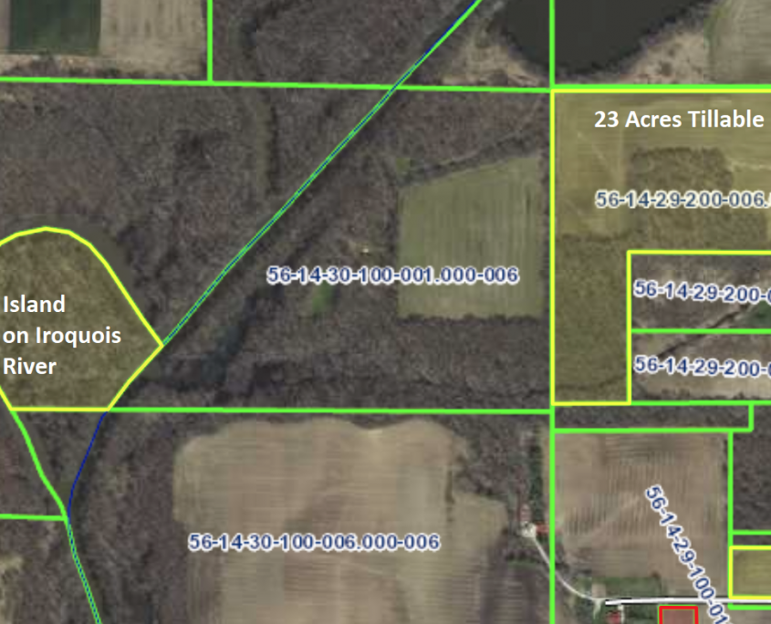 23+- Acre Wooded Property and Tillable Acres & 13 Acre Island on Iroquois River